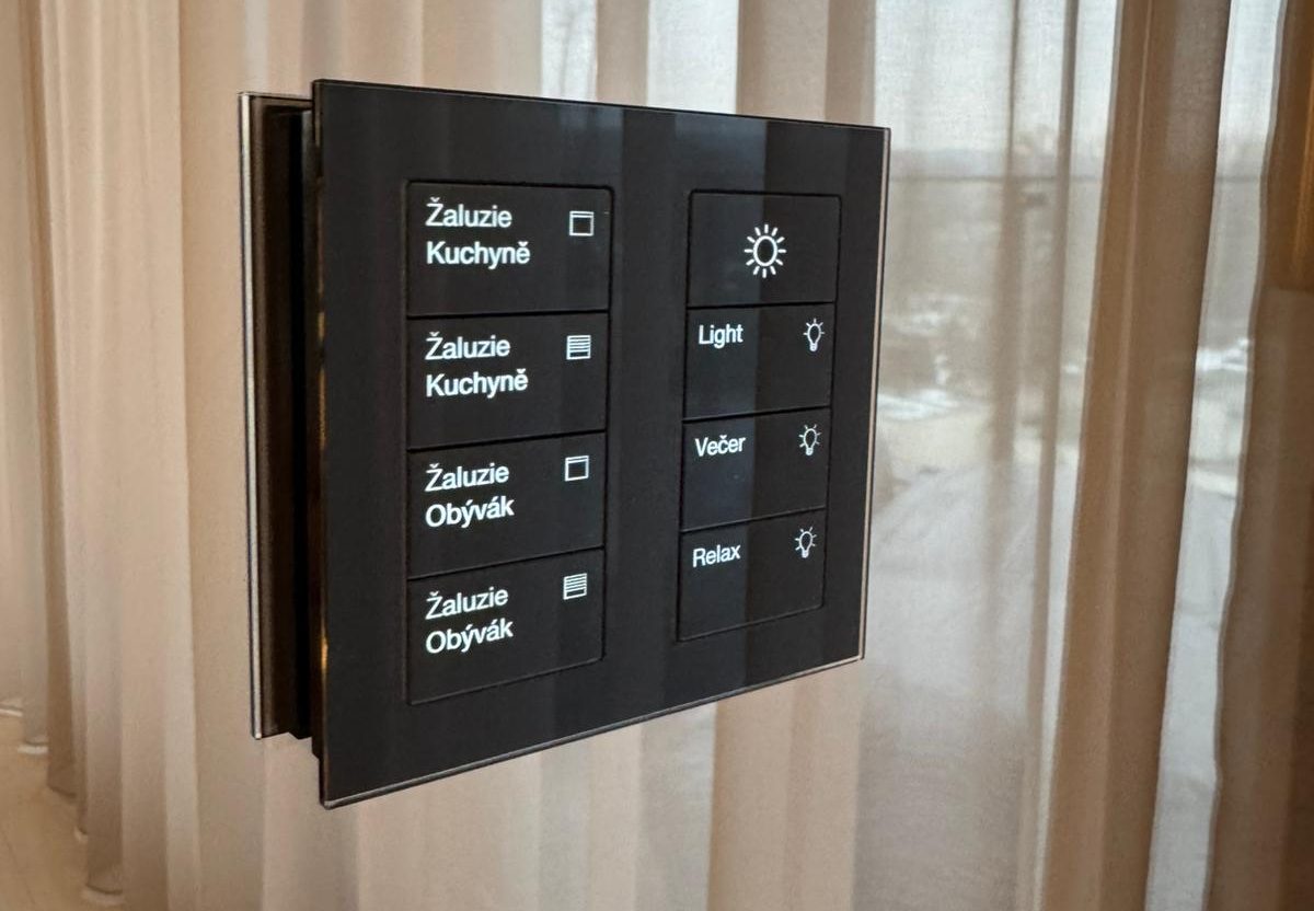 Ovládací prvky (nástěnné ovladače/klávesnice, termostaty) jsme koncepčně stavěli na oddělené sběrnicové kabeláži – tj. samostatná sběrnice ovládání a kabeláž pro ovladače/termostaty.