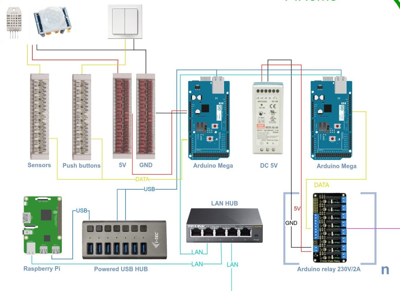 Cílem realizace bylo dodat majiteli rodinného domu hotový řídicí rozvaděč pro chytrou domácnost postavenou na OpenHAB s HW Arduino, navržený podle počtu spínaných a řízených okruhů v domě.